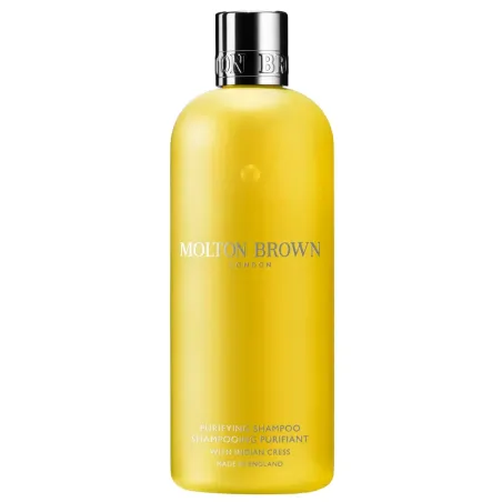 Indian Cress Shampoo Purifying Shamphoo di Molton Brown, è uno shampoo purificante adatto a tutti i tipi di capelli, arricchito con estratto di crescione indiano e aromi di gelsomino, caprifoglio e legno di sandalo per capelli perfettamente puliti.